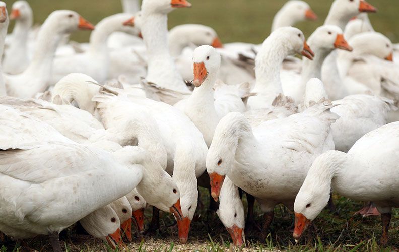 Чем кормить гусей перед забоем, фермер решает, основываясь на наблюдениях за стадом. Если птица очень толстая, пересмотрите кормовой рацион — картофель и кукуруза способствуют накоплению жира. Уменьшается их пищевая доза и увеличивается количество овса и тертых корнеплодов.