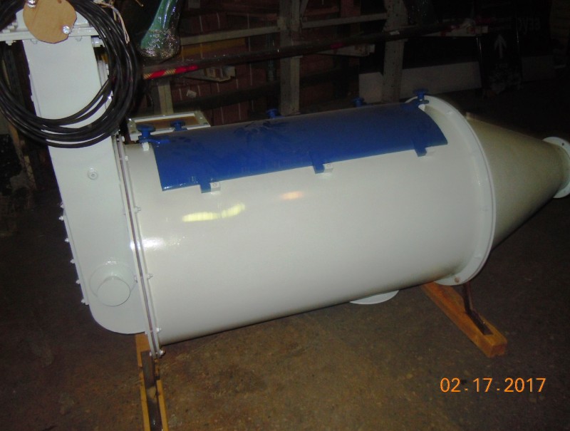 К камере «пыльного» воздуха подключается ресивер сжатого воздуха, имеющий электромагнитные клапаны. Из ресивера сжатый воздух поступает через электромагнитные клапаны в продувочные трубы. С поверхности рукавов пыль сбивается импульсами сжатого воздуха, затем осыпается в бункер, после чего удаляется из фильтра через устройство выгрузки.