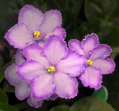 При должном уходе фиалка цветет по 8 месяцев в году. На одном цветоносе распускаются от 3 до 7 мелких 1- или 2-цветных бутонов. При массовом цветении растение украшают до 80-100 цветов. Лепестки махровые с волнистыми или бахромчатыми краями, а окраска бутонов разнится и может быть белого, фиолетового, голубого, розового, малинового или синего оттенков. Цвет и размер бутонов зависят от того, к какому из более 1,5 тысяч известных комнатных сортов относится сенполия.