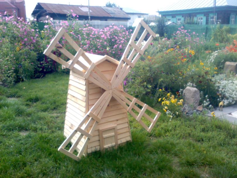 - Украшение или функциональная постройка: деревянная мельница в саду
