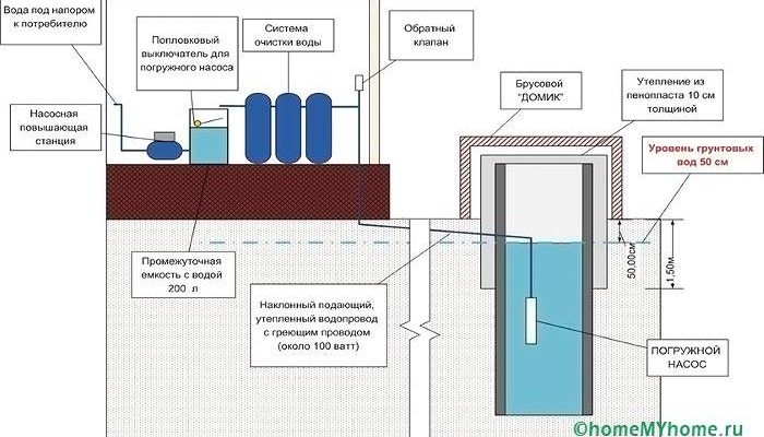 Круглогодичный водопровод может быть только постоянным. Выполняется он по стандартной схеме обустройства системы, но есть некоторые особенности: