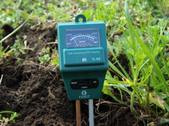 - Современный и точный метод – использование прибора под названием рН-метр. Ножки-электроды загружаются в землю на 20–50 см. Сигнал передается на дисплей. На экране высвечивается уровень pH.