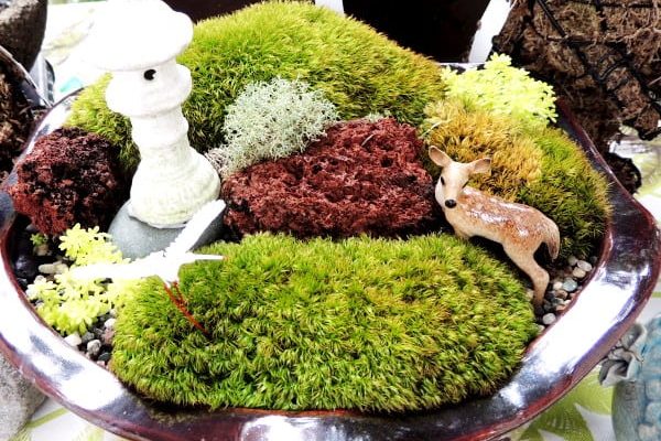 Смешивание нескольких различных видов бриофитов поможет создать удивительный коллаж из различных оттенков изумрудного цвета.