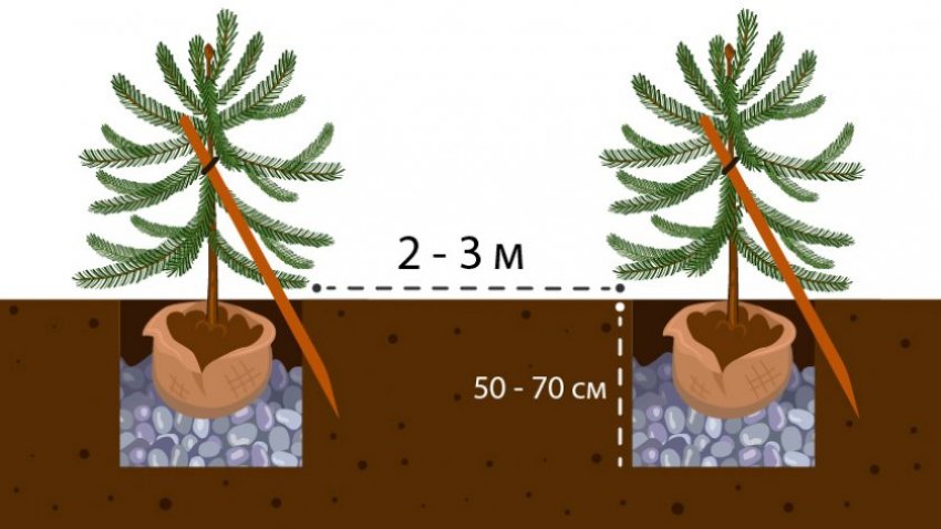 Внимание: приняв решение посадить во дворе не одну елку из леса, а целую композицию, расстояние между посаженными саженцами должно быть не менее 3 м. Так как они разрастутся, и превратятся в огромные деревья.