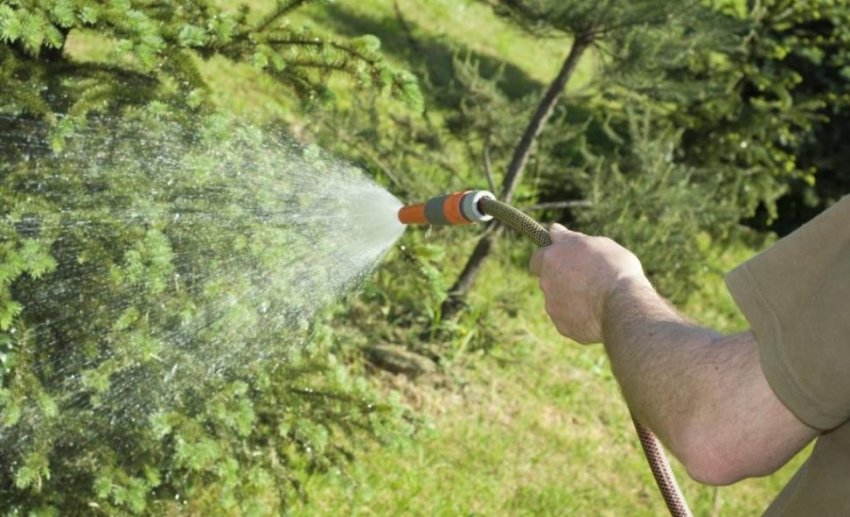 Важно: обычно молодой хвойник достаточно поливать раз в неделю несколькими ведрами теплой и отстоявшейся воды.