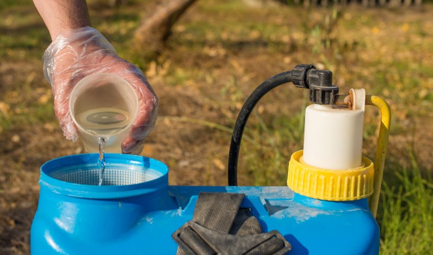 К примеру, для приготовления маточного раствора можно использовать 10 мл выбранного удобрения на 100 мл воды, а затем отобрать по 5 мл и дополнительно развести их в 10 л воды. В целом этого количества готовой смеси будет достаточно для обработки 20 деревьев.