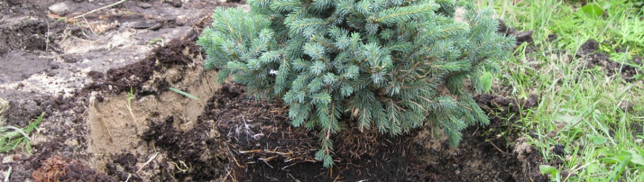 - Хорошо засыпьте все пустоты вокруг корневища ели и слегка уплотните поверхность субстрата.