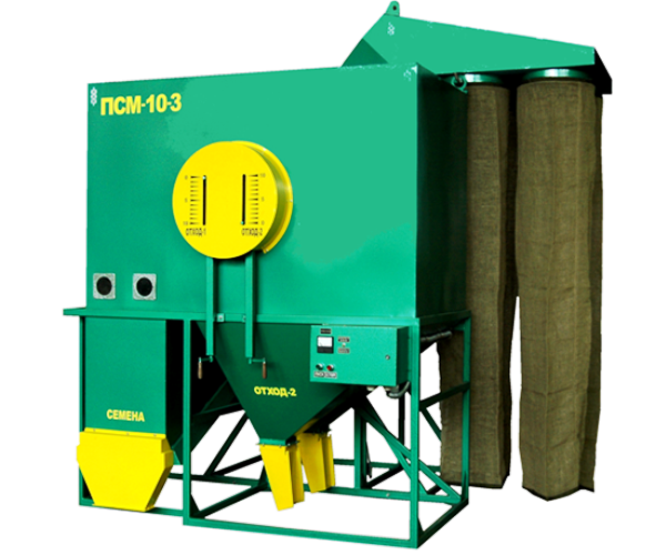 Пневматическая сортировальная машина марки ПСМ-10 предназначается для того, чтобы осуществлять окончательную очистку семян колосовых, зернобобовых и крупяных культур, сорго и кукурузы от трудноотделимых примесей, низкопродуктивных и невсхожих семян, очищать продовольственное зерно и доводить его до высоких хлебопекарных кондиций. Устройство может функционировать в составе зерноочистительных агрегатов, семяочистительных линий, очистительно-сушильных комплексов и работать самостоятельно, комплектуясь с устройствами, которые транспортируют зерновой (семенной) материал к машинам.