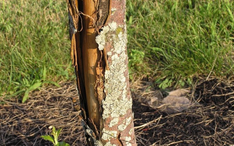 Поврежденное дерево становится идеальным местом для развития болезней и вредителей, т.к. при разрыве коры оголяется ничем незащищенная древесина.