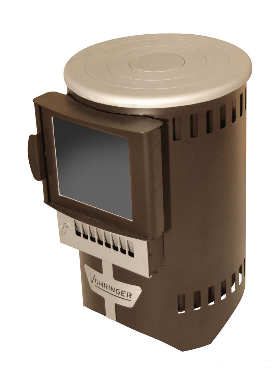 Упрощение коснулись варочной поверхности и стеклянного окошка в топке. В остальном, это та же печь для дома, но с еще более невзрачным дизайном.