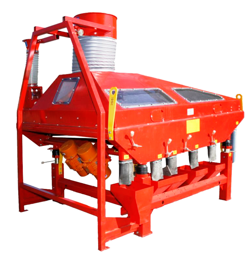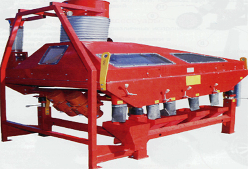 Преимуществом данной машины является наличие специального задерживающего камни фильтра, что позволяет сразу же убрать твердые инородные тела и не мешать дальнейшей очистке. Решетчатый механизм данного стола имеет выпуклую форму, что позволяет качественнее делить зерно на различные фракции.