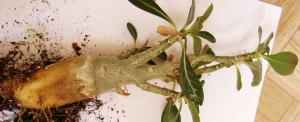 Когда при нажатии на такой надрез выделяется коричневатая жидкость – бесспорно, идут активные процессы гниения адениума.