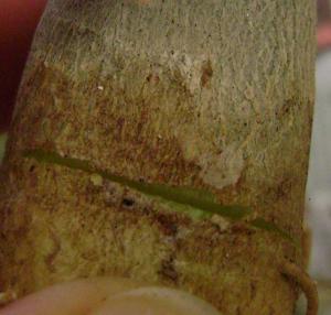 - После извлечения растения с повязки нужно сделать несколько срезов в местах соприкосновения стволов.