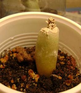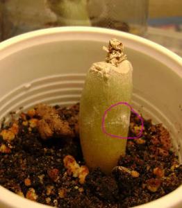 Нужно взять сеянцы и отрезать очень аккуратно низ каудекса с корнями. Используя для этого тонкий и очень острый нож. Повреждённые места беречь от засорения.