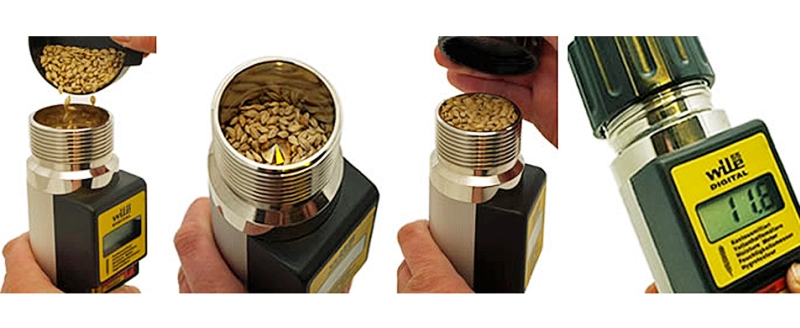 Для оперативного контроля влажности зерновых, а также бобовых и масличных культур применяется влагомер Wile-55. Влагомеры зерна и семян обычно имеют ограниченное количество калибровок. Прибор отличается малым временем измерения (всего 5 секунд) и небольшим объемом образцов, которые требуются для исследования. Влагомер используют при сборе урожая и его перевозке, а также на элеваторе, токах и мукомольных предприятиях. Устройство отличается небольшими размерами и весом, что позволяет носить его с собой (для удобства оно идет в комплекте чехлом и наплечным ремнем). Память прибора содержит информацию о 16 видах культур, что дает возможность получать точные результаты замера для каждой культуры. В памяти устройства сохраняется 99 замеров. Кроме того, оно может автоматически рассчитывать усредненное значение (это важно при проверке влажности большой партии зерна).