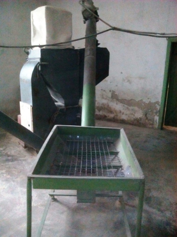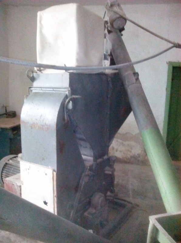Зерно, которое подлежит измельчению, загрузочным шнеком подается из бурта в бункер. Загрузка бункера регулируется при помощи датчиков нижнего и верхнего уровней. Из зернового бункера сквозь щель между наклонной нижней стенкой и заслонкой зерновой материал проходит в специальный магнитный сепаратор, где очищается от содержащих металл примесей, после чего попадает в камеру дробления. Там зерно под воздействием вращающегося ротора, на котором закреплены молотки, измельчается. Далее через сменное решето измельченный продукт попадает на горизонтально расположенный шнек дробилки.