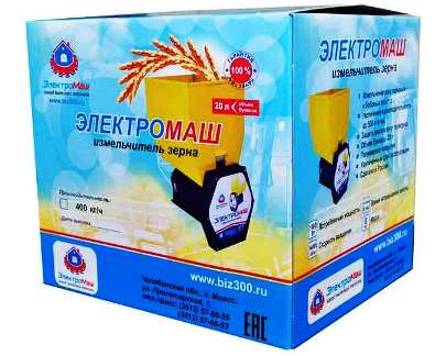 Зернодробилка Электромаш работает за счет электродвигателя, мощность которого зависит от конкретной модели, которых выпускается несколько, и варьируется от 1150 Ватт до 1900 Ватт. Зернодробилка может быть закреплена на верстаке, а также имеет достаточно большой раструб для засыпания в аппарат корма. Высока и скорость переработки кормов – до 400 килограммов зерна в час, до 900 килограммов корнеплодов в час и до 150 килограммов травы в час. Модели, имеющие мощность 1150 Ватт, измельчают зерно медленнее – до 240 килограммов в час.