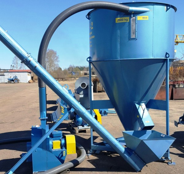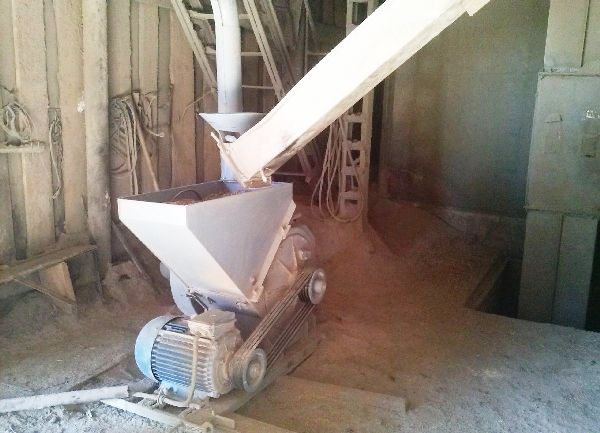 Дробилка включает следующие основные узлы: дробильную камеру, в которой находят-ся дробильный барабан и вентилятор, зерновой приемный бункер, шнековый погрузчик, циклон, рукава, электродвигатель и системы трубопроводов. Устройство используется как самостоятельная машина. Управляется эта техника дистанционно со шкафа управления. Питание осуществляется от сети (трехфазный ток напряжением 380,0 Вольт и частотой 50 Герц).